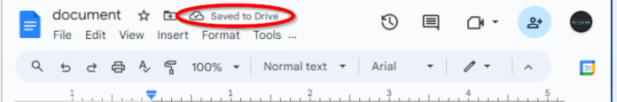 - As you edit the document, all changes are saved automatically by Google Docs. You can see the saving status at the top of the document next to the document title ("Saved to Drive"). This feature ensures that your work is not lost and is accessible from any device where you can log into your Google Drive.