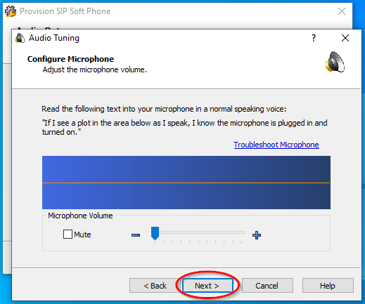 Click on Finish to close the Audio Tuning Wizard and return to the Softphone Provisioning Wizard.