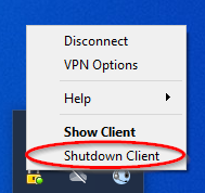 Right click the icon to bring up the menu, then click Shutdown Client''' at the bottom of the menu.