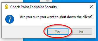 Click Yes to confirm that you want to shutdown Check Point.