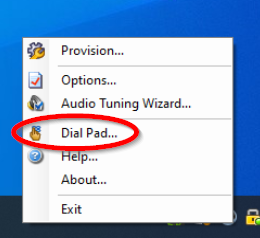 Right click the icon to bring up the softphone’s menu, then click Dial Pad.